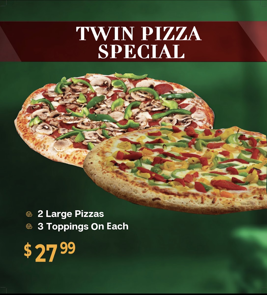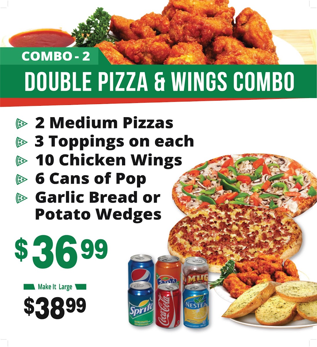 The menu offers a variety of Italian and fast food options, focusing primarily on pizza available for dine-in, takeaway, or delivery. It is organized into several key sections to cater to different preferences and meal occasions.
